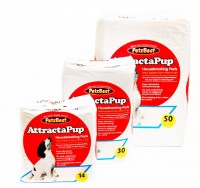 These PetzBest AttractaPup "wee wee" training pads turn training from a chore to a cinch! PetzBest designed these housebreaking pads with a specially formulated scent that humans are not able to detect, but puppies sure can. Each 24" x 24" super absorbent quick-drying housebreaking pad features a no-leak lining that safeguards both carpet and hardwood floors and help puppies know where to go!