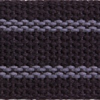 Cotton webbing with rubber tracers suitable to camera straps, luggage and any other items that need a slip proof product. Available in assorted colors and widths for stock.
