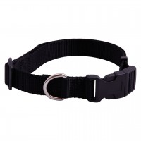 Black nylon adjustable dog collar available in Toy, Small, Medium and Large sizes.